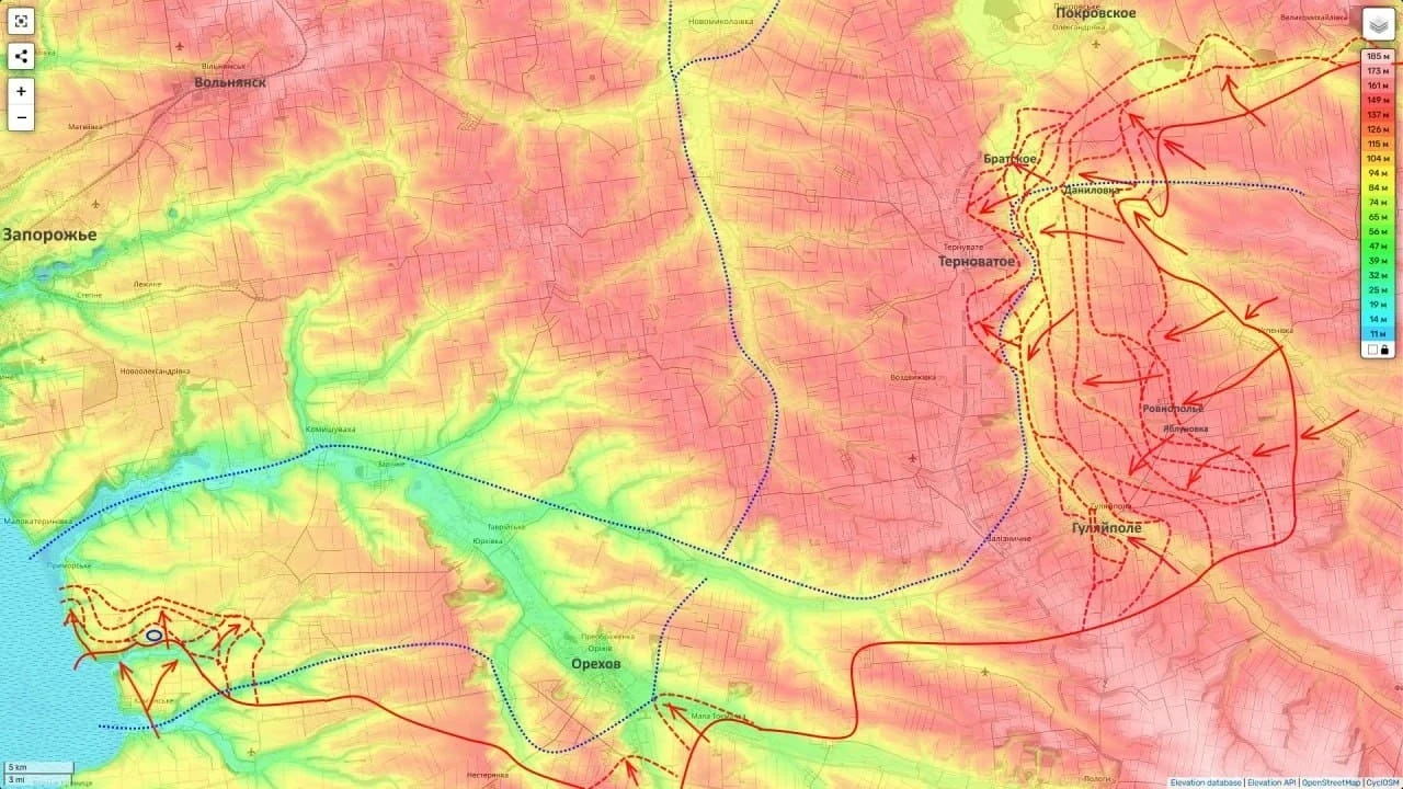 «Противнику будет крайне трудно его в текущей ситуации удержать. А освобождение Терноватого будет обозначать прорыв обороны ВСУ на реке Ганчур на оперативную глубину. А далее российским частям можно будет вводить войска и развивать этот прорыв, заходя в тыл Ореховской группировке противника с северо-востока», - проинформировал блогер.
