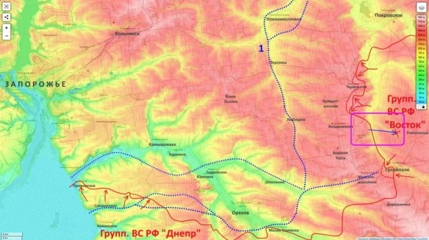 Параллельно на Гуляйпольском участке действует группировка «Восток». После занятия Гуляйполя удары наносятся южнее Терноватого, через район Риздвянки в направлении Любицкого. В самом Терноватом идут штурмовые действия сразу с нескольких направлений. Общая логика операции, как отмечает обозреватель, сводится к созданию оперативного окружения Орехова с северо-запада и юга.