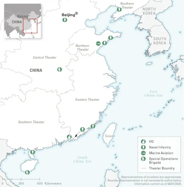Основные военно-морские базы ВМС НОАК на январь 2024 г.