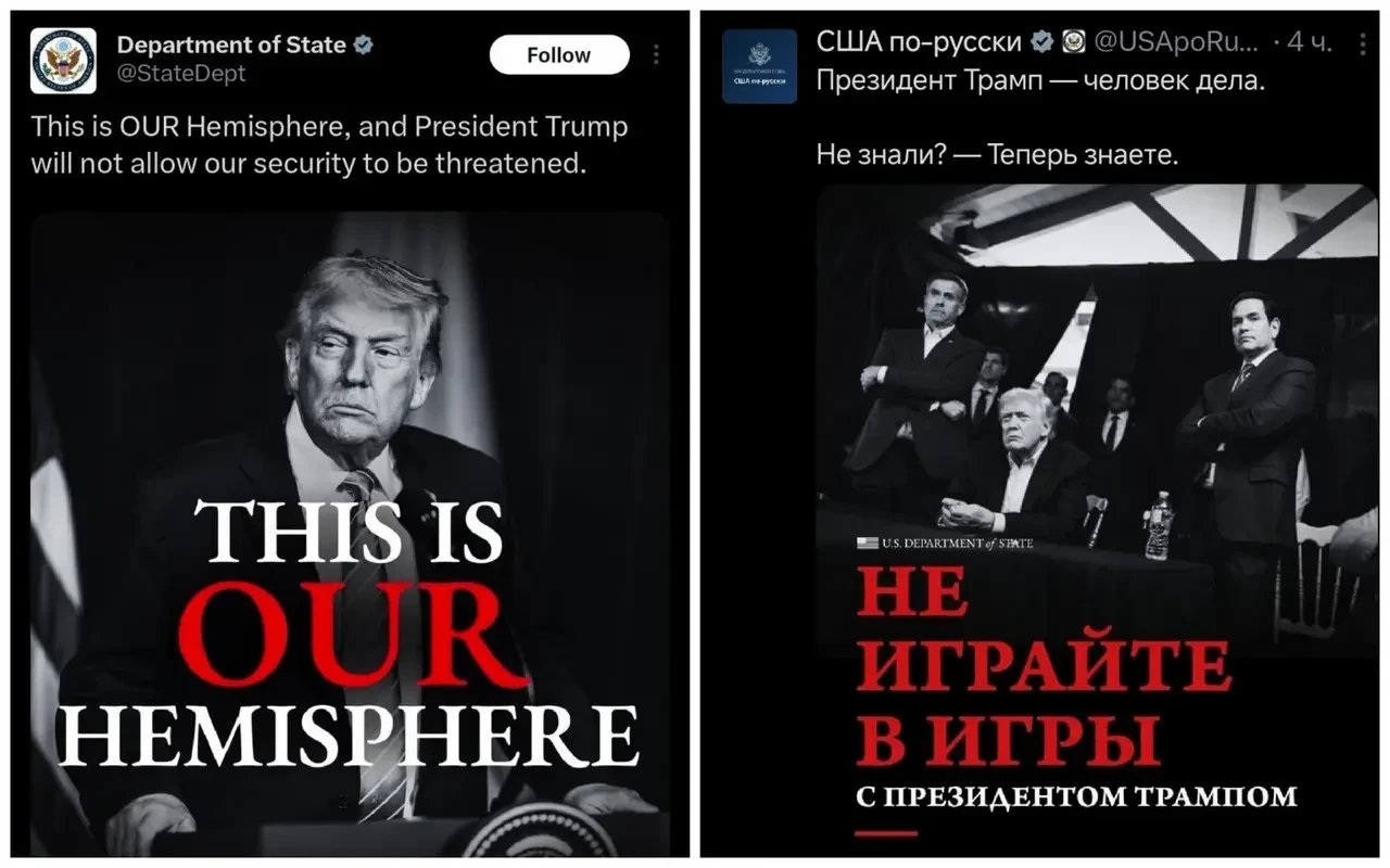 Вашингтон считает западное полушарие своим и не допустит появления на его территории различных «баз противников», кроме того, все крупнейшие резервы энергоресурсов тоже будут контролироваться США. Это теперь официальная позиция Соединенных Штатов, накануне Госдеп опубликовал соответствующее заявление, сопроводив его фотографией Дональда Трампа.
