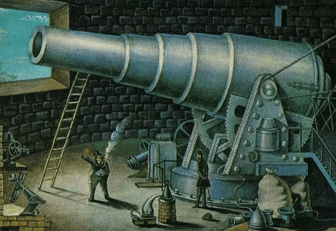 Пушка доктора Шульце из романа Ж. Верна и А. Лори «500 миллионов бегумы». Иллюстрация художника В. Любарова