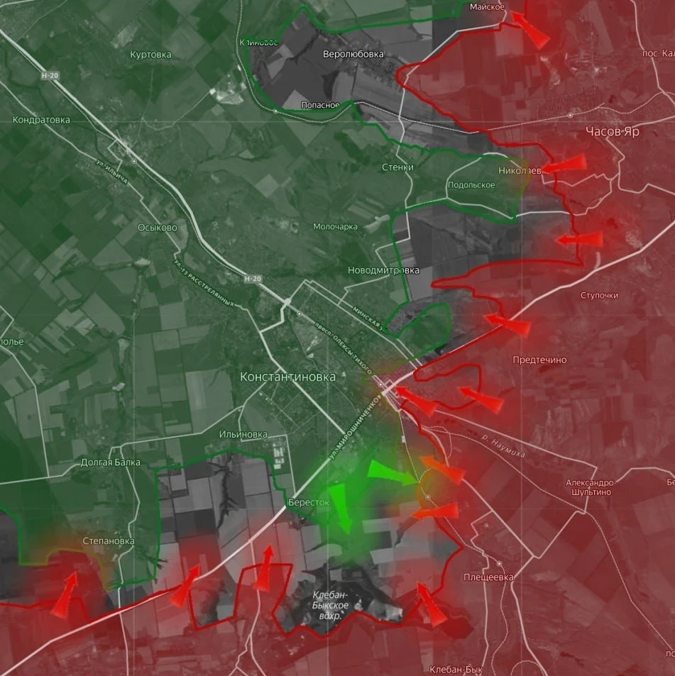 На Константиновском направлении ВС РФ стараются расширить территорию контроля в районе Берестка, Степановки и в самой Константиновке. Более интенсивные бои идут в Майском и Марково. В районе Веролюбовки противник постоянно контратакует, ситуация там довольно подвижная.