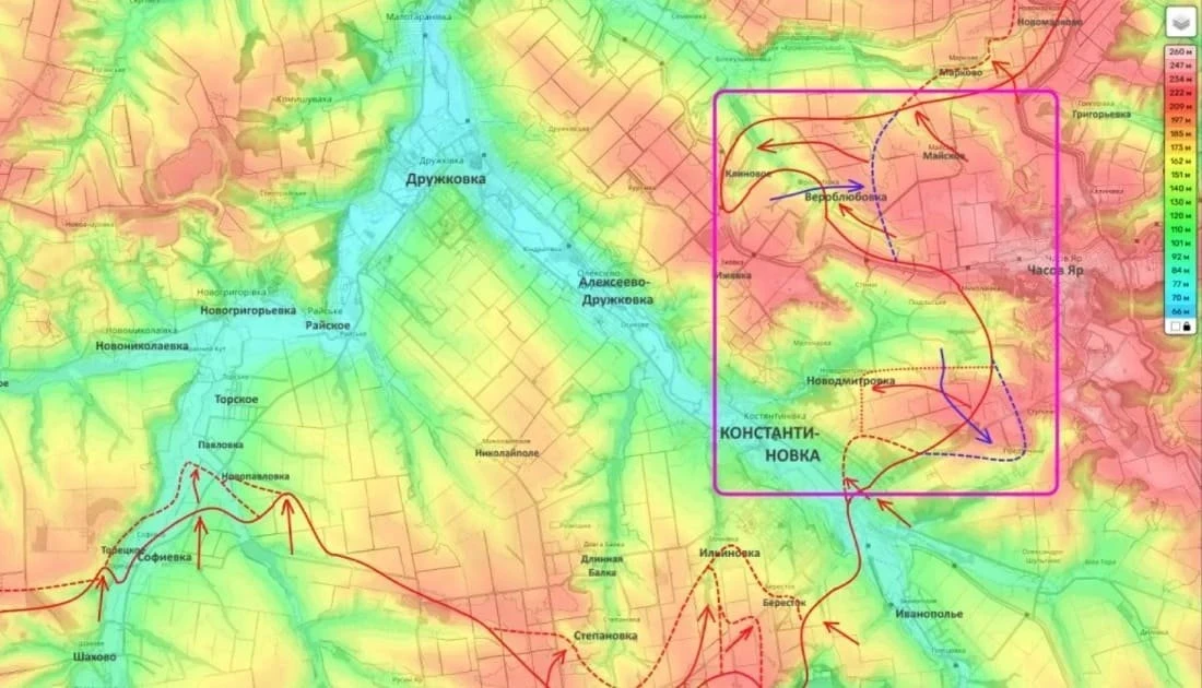По информации военблогера развивается наступление и южнее Константиновки, подразделения ВС России зашли в поселок Бересток. Ведутся бои и в районе Веролюбовки.