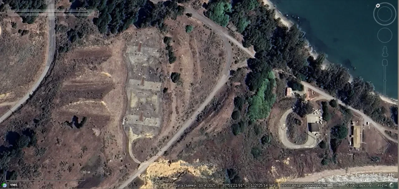 Спутниковый снимок Google Earth: бывшая позиция ЗРК MIM-14 Nike Hercules в окрестностях Сан-Франциско. Снимок сделан в октябре 2025 года