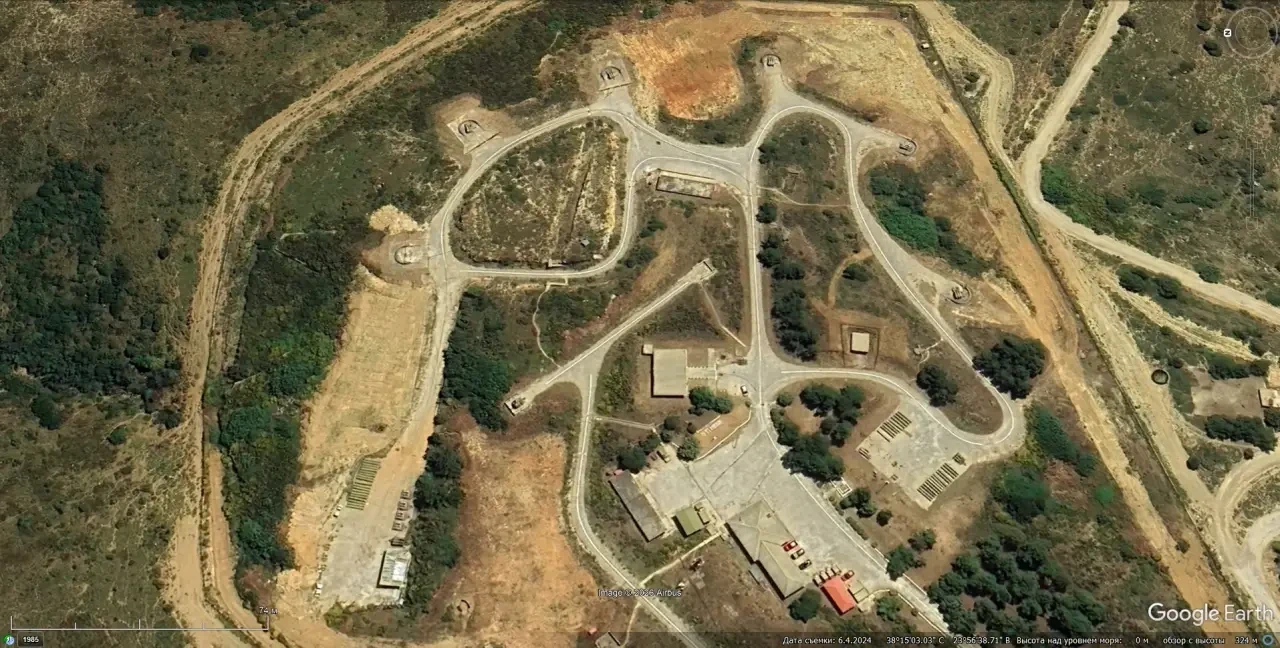 Спутниковый снимок Google Earth: позиция ЗРК MIM-23 I-Hawk в 6 км северо-восточней города Капандритион. Снимок сделан в июне 2024 года