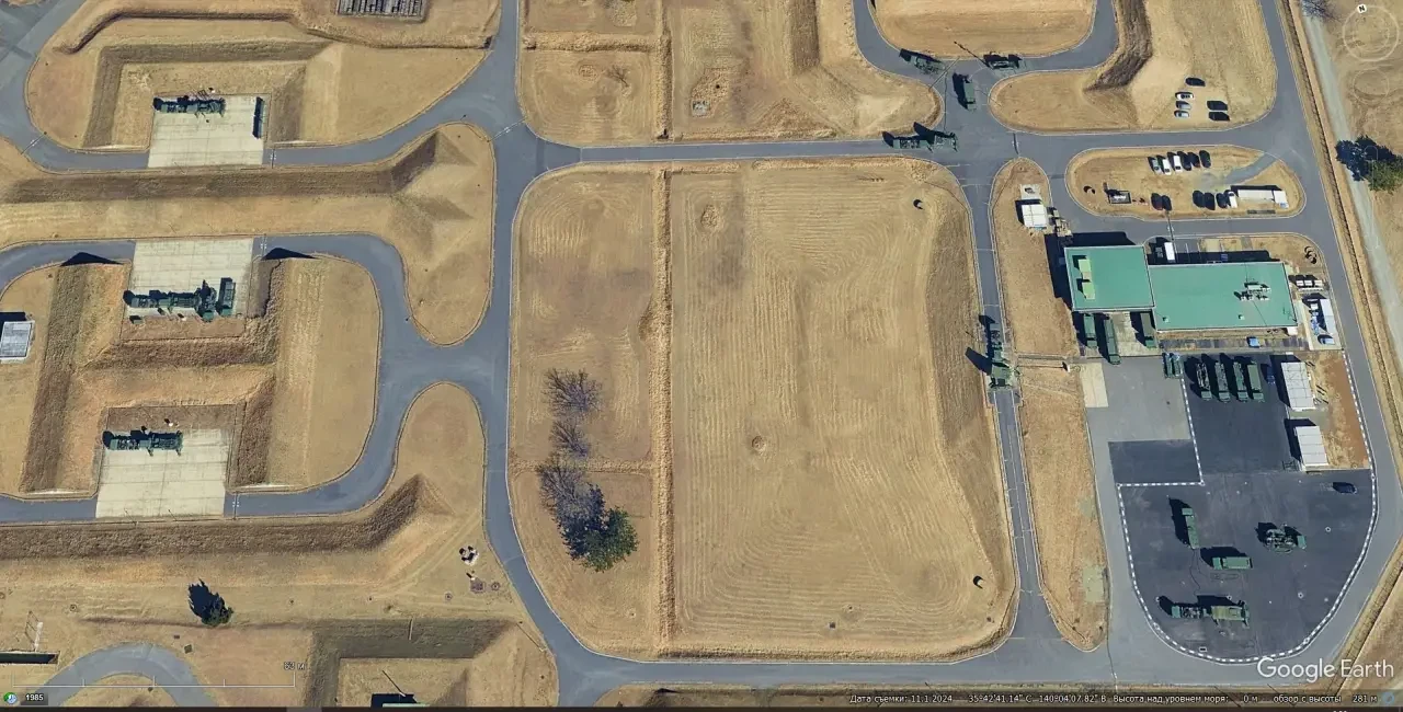 Спутниковый снимок Google Earth: позиция ЗРК Patriot PAC-3 в северо-восточном пригороде Токио. Снимок сделан в декабре 2024 года