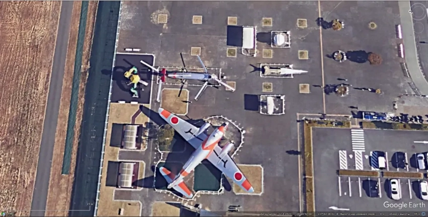 Спутниковый снимок Google Earth: радиолокационные средства и ЗУР Nike J в Музее Воздушных Сил самообороны Японии в Хамамацу