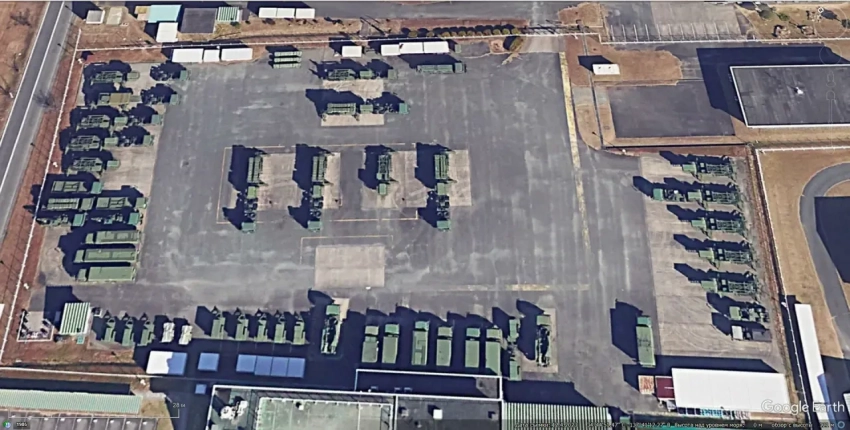 Спутниковый снимок Google Earth: ЗРК Patriot PAC-3 хранящийся на авиабазе Хамамацу. Снимок сделан в декабре 2023 года