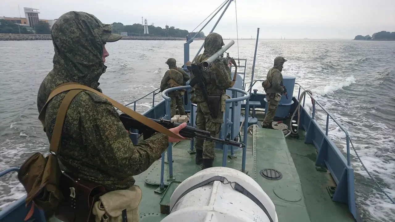 Военнослужащие отряда по борьбе с ПДСС Балтийского флота на патрулировании