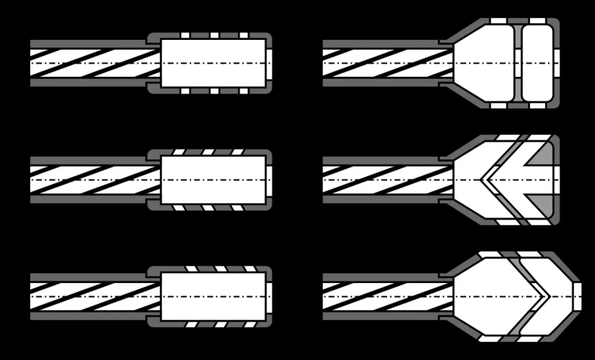 Принципиальные схемы дульных тормозных устройств