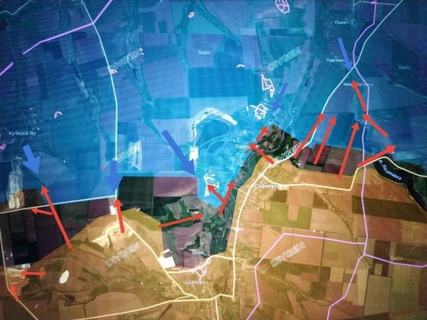 Российские войска закрепились в Новопавловке и ведут ожесточённые встречные бои в направлении Павловки. При этом участок дороги на подходе к Павловке с юга остаётся под контролем противника, сообщает Котенок.