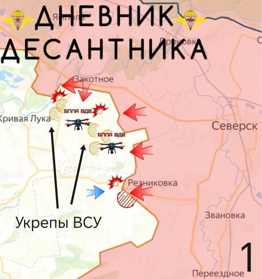 На участке Бондарное - Хромовка идут встречные бои, российские подразделения штурмуют Никифоровку, зайдя в ее южную часть. На северо-западе фиксируется продвижение к Закотному, несмотря на попытки ВСУ контратаковать с высот в районе Кривой Луки. Противник начал подготовку Славянска к обороне, используя антидроновые сетки и превращая подвалы промзон в склады БК.