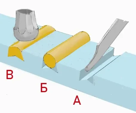 Понятно, что канавки линейной формы делать быстрее и попроще, нежели вырезать на той же стали сложный цветочный орнамент. В ход при этом идет плоский тонкий надфиль, хотя для скашивания стенок внутрь резец штихель все равно незаменим. Простой способ — вырубать канавки зубилом-сечкой. Инструмент удерживается пальцами, накладывается на рисунок, после чего по нему бьют молотком. При этом необходимо помнить, что применение такой техники, конечно же, не может обеспечить идеально четкий контур рисунка. Неровности, получившиеся на линии, убираются надфилями или штихелями.