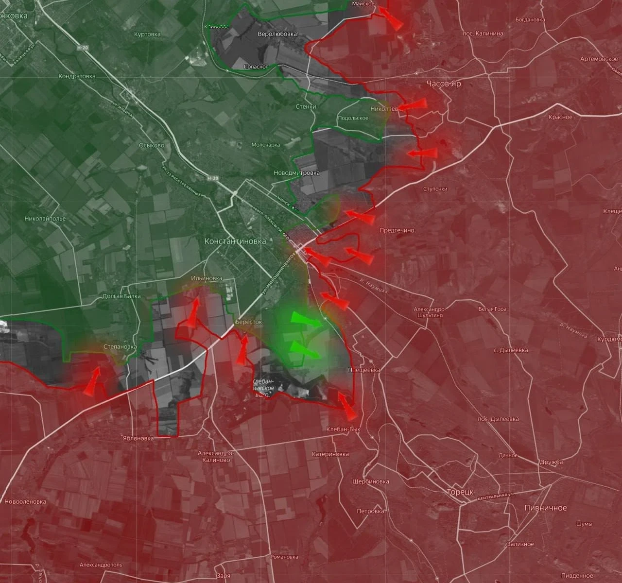 На Константиновском фронте ВС РФ зачищают подвалы на северо-восточной окраине занятого вчера Берестка, от которого до южного предполья Константиновки остаётся 1 км. Наши накапливаются в районе соседней Ильиновки, чтобы продолжать штурм села. В Константиновке под контролем российских войск ж/д вокзал и его территория. На северном фланге без существенных изменений: идут бои на рубеже Марково - Майское.