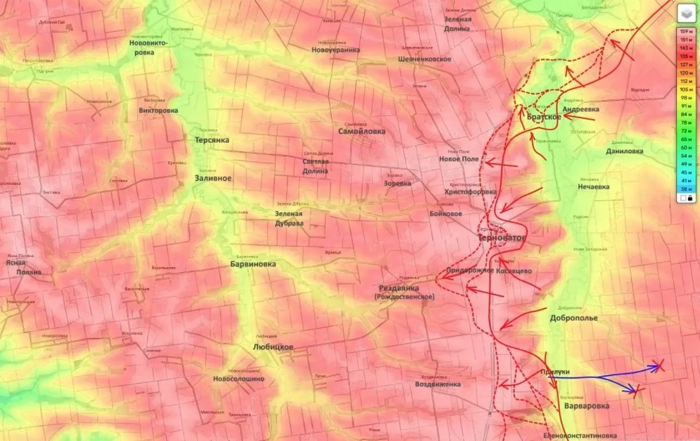 Севернее Торецка штурмовые подразделения продвигаются малыми группами через балки и естественные укрытия. Движение со стороны Шахово в направлении Новониколаевки и Григорьевки может осложнить положение украинской группировки в Константиновке.
