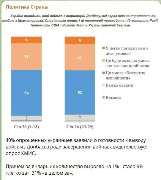 До мира осталось немного, весной будет заключён договор, все это понимают и уже открыто призывают остановить бусификацию. Нардепы уловили тренд и публично требуют от министра обороны навести порядок, чтобы прекратить беспредел ТЦК, который приводит к массовому СЗЧ в армии.