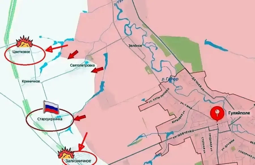 После взятия Староукраинки ВС России продвинулись к Цветковому