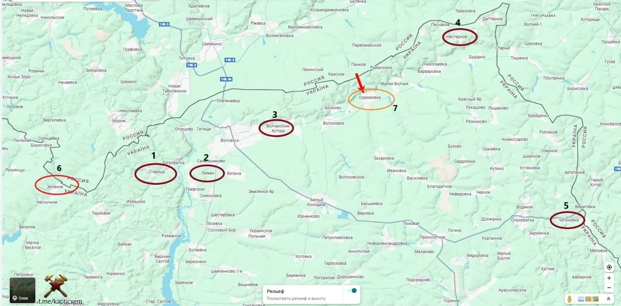 На Харьковском фронте российские войска открыли новую, 7-ю точку напряжения - бои идут в районе Охримовки (Ефремовки). Цель - вклиниться между Волчанскими Хуторами и Нестерным.