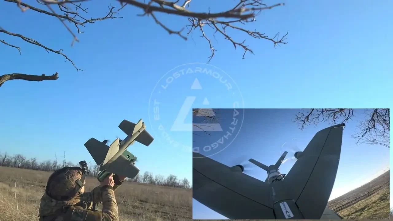 Запуск БПЛА «Ёлка» с ручного пускового устройства. Фото Telegram / Lost Armour