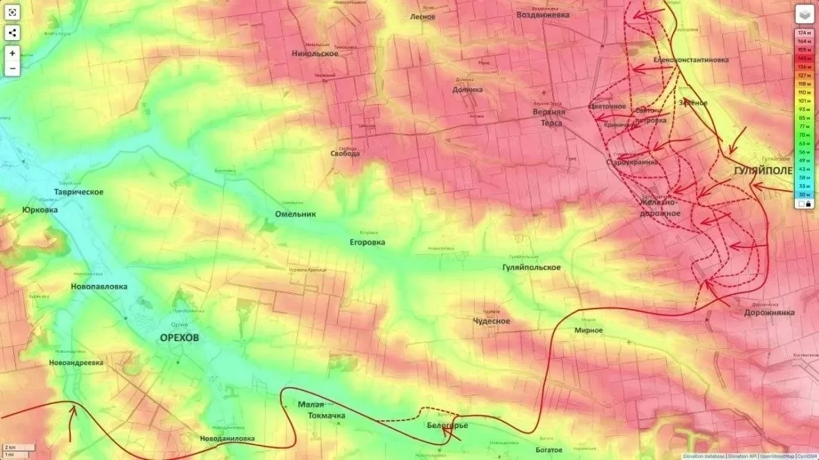 Ключевой точкой напряжения является город Орехов - важнейший оборонительный узел ВСУ, контроль над которым обеспечивает доминирование над транспортными и логистическими маршрутами всего участка.