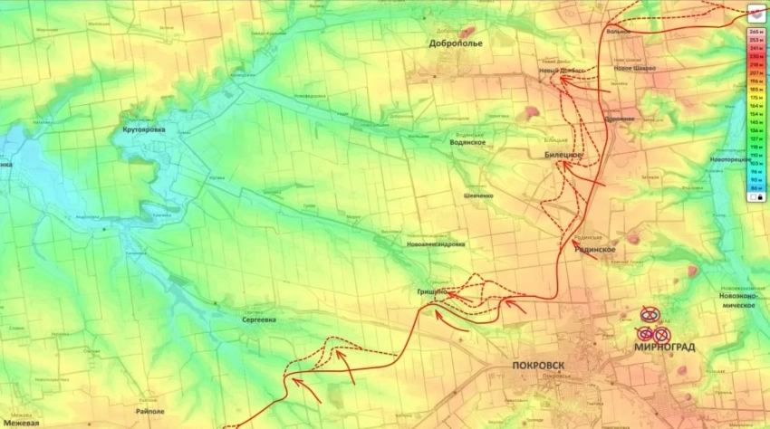 Кроме ситуации в самом Гришино, есть движение и по флангам. К северо-востоку от села войска продвигаются в сторону Новоалександровки.