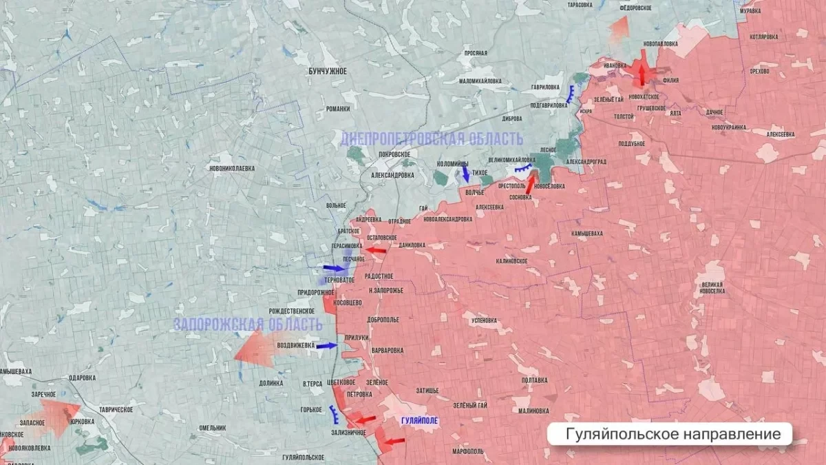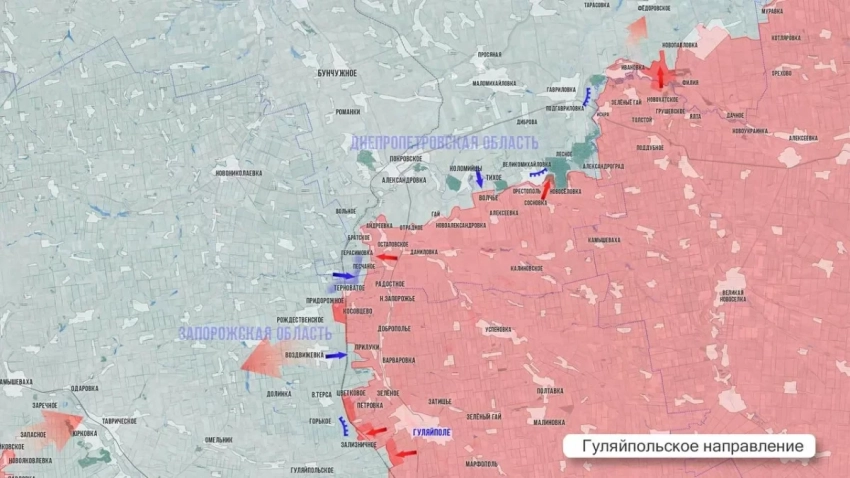 Гуляйпольский участок. Здесь армия России перешла в наступление широким фронтом - от Гуляйпольского до Рождественского. Подготовлен надежный плацдарм для ликвидации украинских позиций в районе Горького и сформирован южный охват Верхней Терсы.