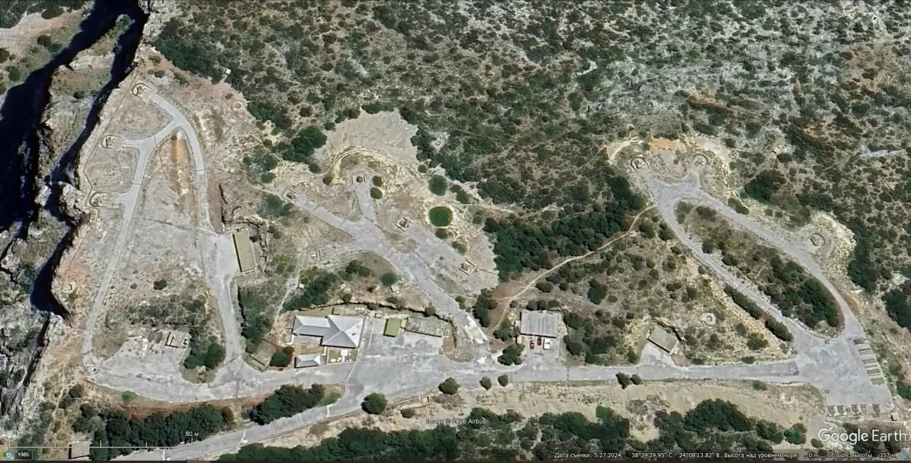Спутниковый снимок Google Earth: позиция греческого ЗРК MIM-23 I-Hawk в окрестностях городка Кими на восточном побережье Эвбеи. Снимок сделан в мае 2024 года