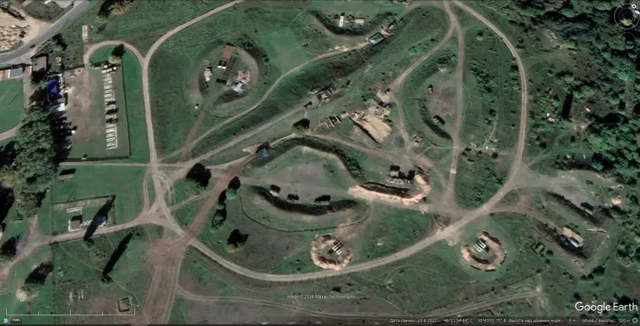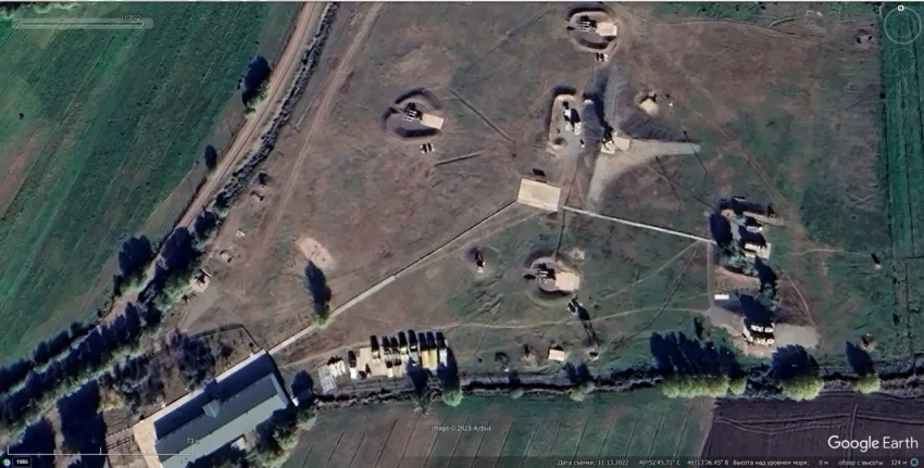 Спутниковый снимок Google Earth: ЗРК С-125-2Д «Печора-2Д» на бывшей позиции С-300ПС в южном пригороде Одессы. Снимок сделан в октябре 2022 года