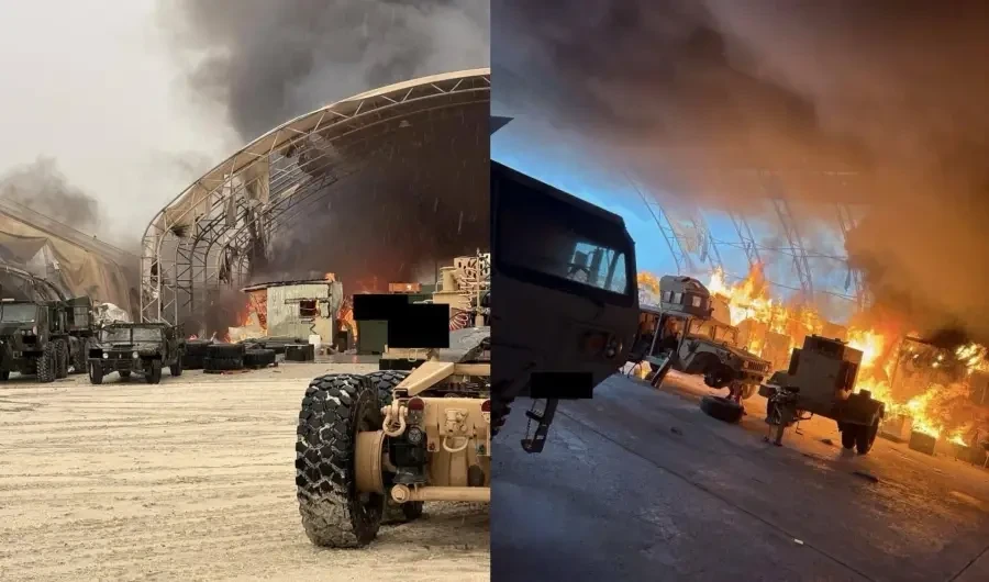 Однако в сети показаны очередные фотографии пораженной базы США в ОАЭ. Что более всего примечательно, на кадрах горит ЗРК Patriot вместе с машинами обеспечения. Получается, что батарея ПВО не стояла на боевом дежурстве и не сумела отразить воздушную атаку. Да и техника лишь частично размещена в легком арочном ангаре.