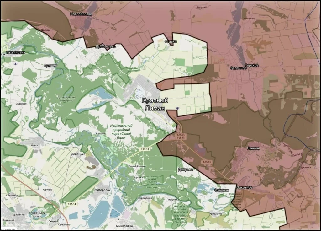 Основная тактика - артиллерийские удары, применение FPV-дронов и продвижение малыми штурмовыми группами. Тяжёлые бои идут в районах Дибровы, Дробышево, Яровой, а также в лесах вокруг Красного Лимана. Часть этих территорий фактически стала «серой зоной», где позиции регулярно переходят из рук в руки.