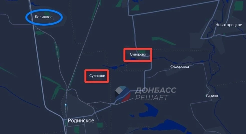 Одновременно штурмовые группы продвигаются через лесополосы к северо-западу от Родинское. Продолжаются тяжёлые бои за Белицкое, где линия фронта остаётся нестабильной.