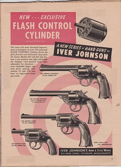 Одна из наиболее популярных разработок компании — пятизарядный револьвер двойного действия 38-го калибра с откидным барабаном, выпускавшийся компанией «Iver Johnson» с 1890 по 1894 год и распространявшийся компанией «John P. Lovell Arms Company» из Бостона, штат Массачусетс. Он был покрыт никелем и стал первым револьвером «Iver Johnson» с логотипом в виде головы совы на рукоятке.