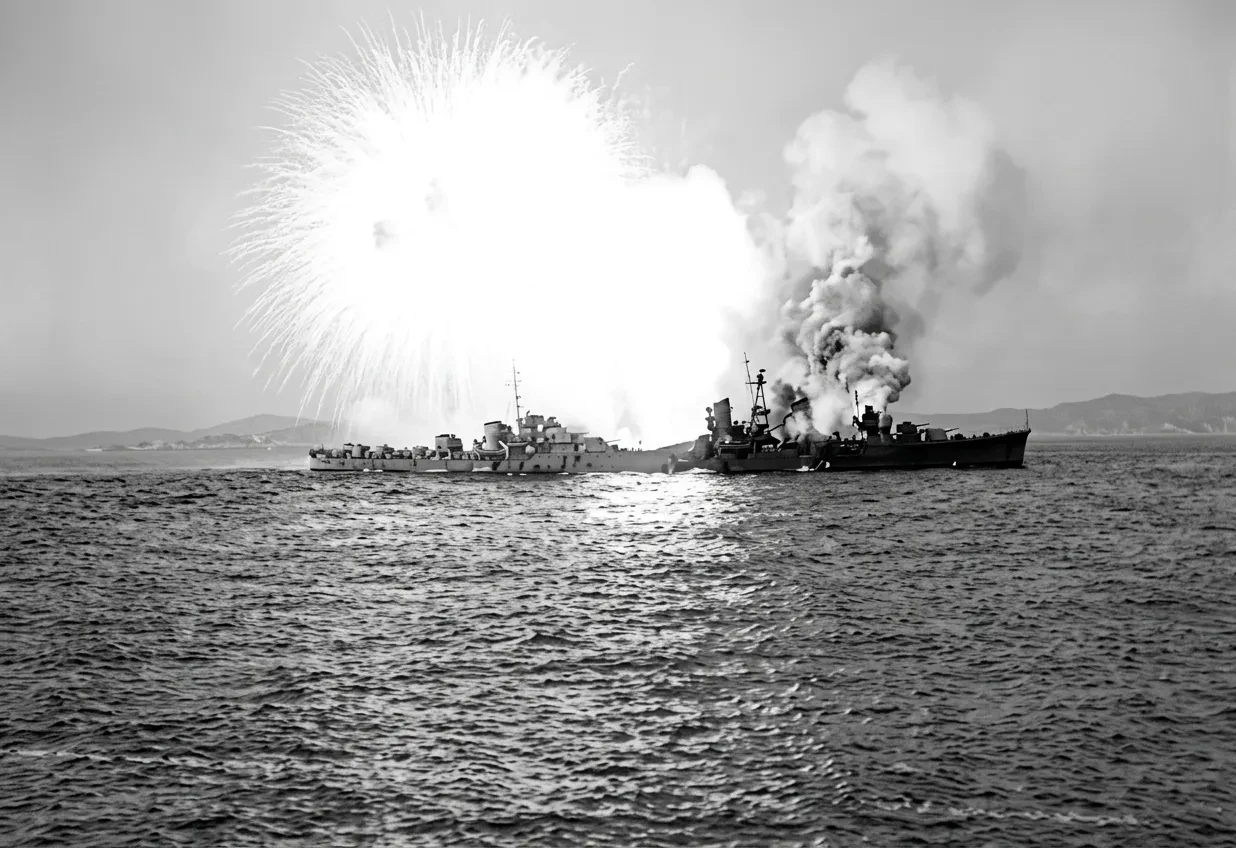 «Вакацуки» под обстрелом во время битвы в заливе Ормок, 11 ноября 1944 года