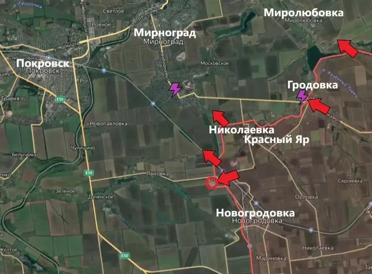 На Покровском направлении продолжаются бои в Гродовке, на подступах к Мирнограду, в направлении Миролюбовки. За последние сутки ЛБС не изменилась.