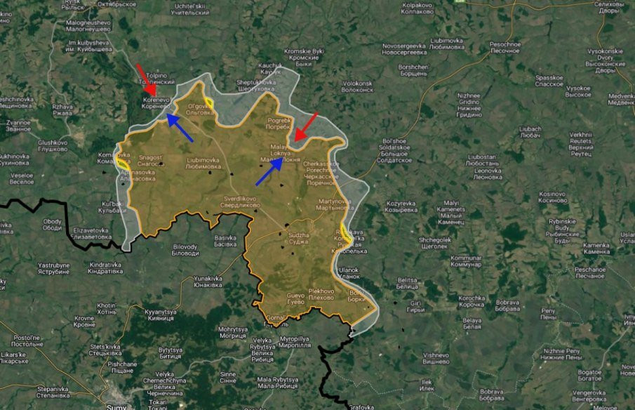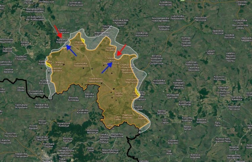 В Суджанском районе украинские боевики продолжают движение на северо-восток от Малой Локни. Идут бои в районе Погребков и Камышовки. Если брать чуть более масштабно, но это продвижение в сторону Льгова и Курчатова.