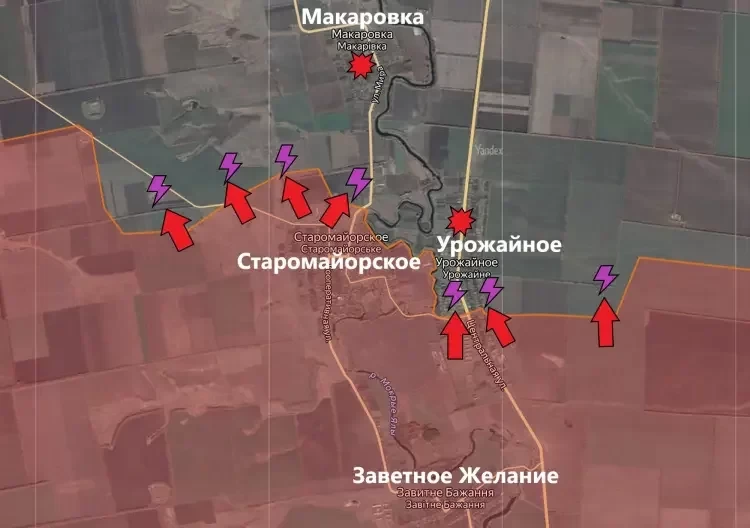 Как сообщает PulsePen, на Великоновосёлковском направлении после того, как наши бойцы отбили контратаки противника на севере Старомайорского, они продолжили своё наступление и полностью зачистили северные окраины населённого пункта от ВСУ. Бои теперь идут на северо-западных подступах к Старомайорскому, где ВСУ ещё удерживают высоту 171.