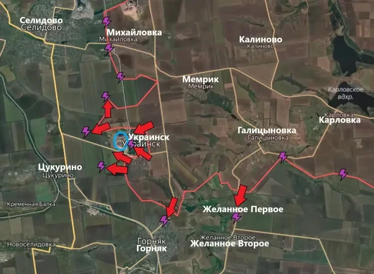 Вражеские ресурсы открыто переживают за судьбу Цукурино, довольно важного логистического хаба этом участке фронта. А всё дело в том, что наши бойцы не только окружают Украинск, но и расширяют зону контроля - на север и на запад.