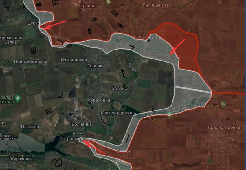 На Купянском участке, по данным с мест, ВС РФ совершили рывок от Песчаного и перерезали трассу Кругляковка-Ковшаровка. Бои идут и в центре Колесниковки, и на окраинах Кругляковки. ВСУ здесь могут оказаться прижатыми к реке Оскол. Севернее Колесниковки ВС РФ подошли к Глушковке и закрепились на окраине.