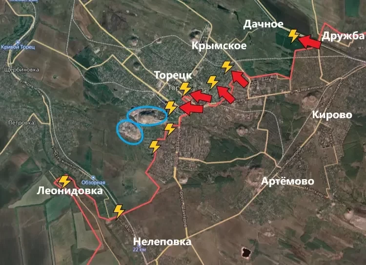 На Торецком направлении ЛБС за последние сутки не изменилась. В самом Торецке (Дзержинске) идут ожесточённые бои в центре города - в районе административных зданий и на территории шахты, а также - близ двух крупных терриконов.