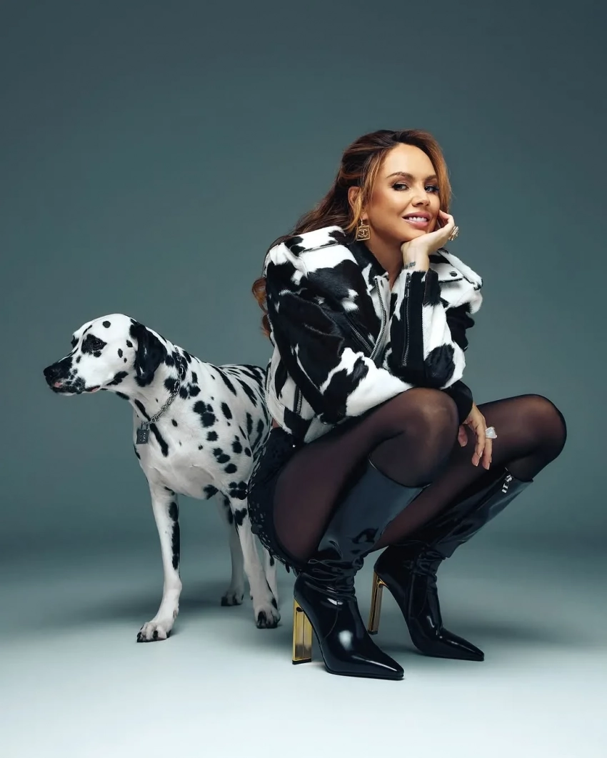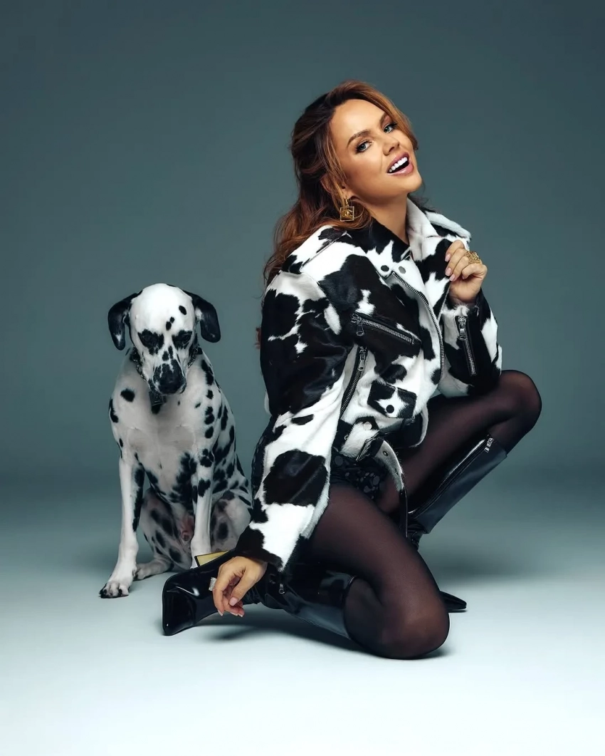 Певица МакSим снялась в новой фотосессии в необычном образе. 41-летняя исполнительница хита "Знаешь ли ты" опубликовала в соцсетях снимки, на которых позирует фотографу в куртке с коровьим принтом, коротких шортах и с собакой породы далматинец. Стилист дополнил образ звезды обувью на каблуке: зебровыми мюлями и сапогами из лаковой кожи.