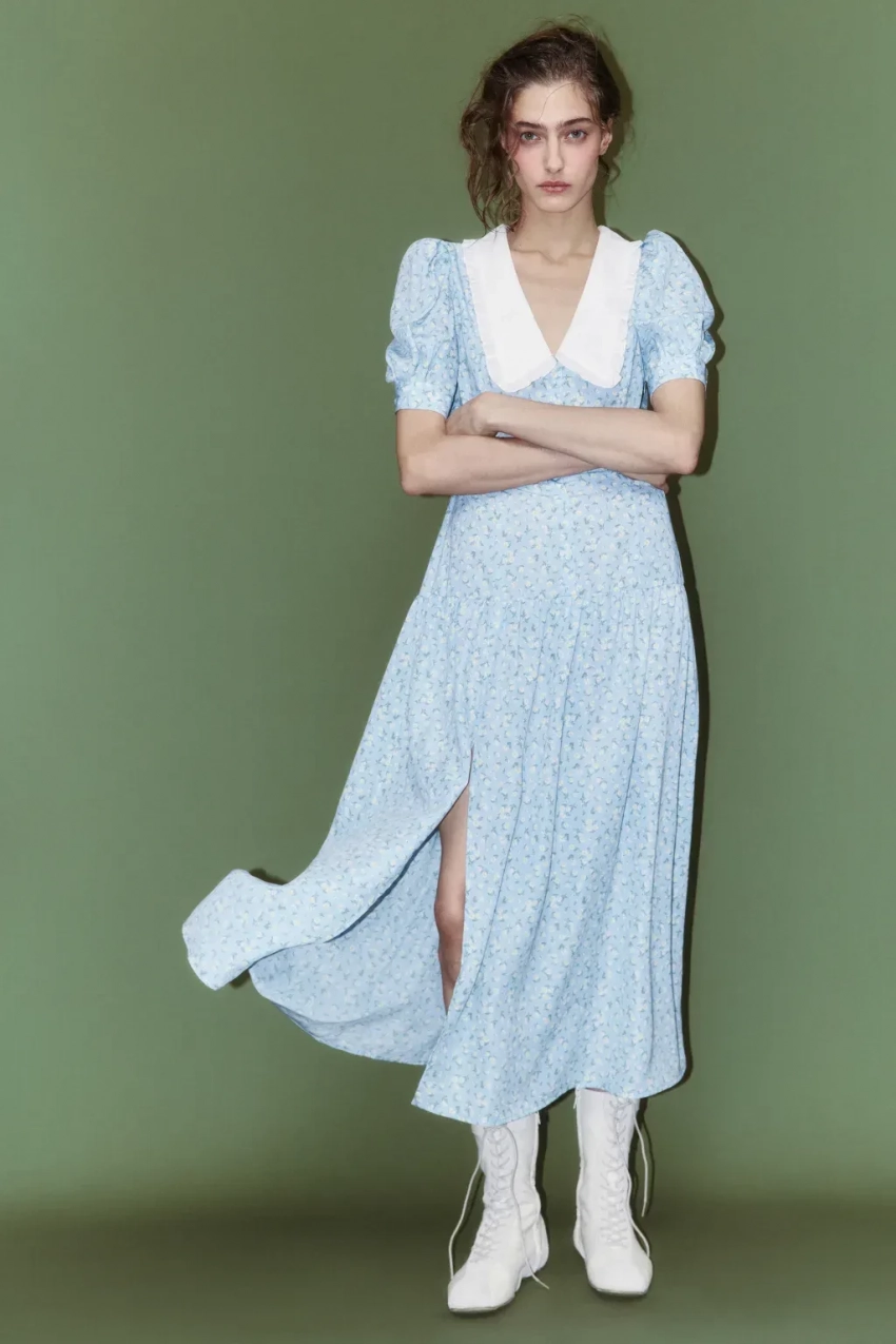 Райан Гослинг и Рэйчел МакАдамс в фильме "Дневник памяти" (2004)/Фото: кадр из фильма/New Line CinemaВ фильме "Дневник памяти", одном из самых романтичных, героиня Рэйчел МакАдамс, Элли, одевалась модно по меркам 1940-х. Пожалуй, больше всего Элли запомнилась зрителям в голубом платье приталенного силуэта, когда она целовалась под дождём с любовью своей жизни Ноем (Райан Гослинг). Актёры не просто сыграли влюблённых, но и закрутили роман на съёмках, который продлился целых четыре года. Эта сцена стала культовой и даже получила награду MTV. А повторить образ Элли легко с помощью похожего голубого платья в модный цветочный принт Befree или Gate31.