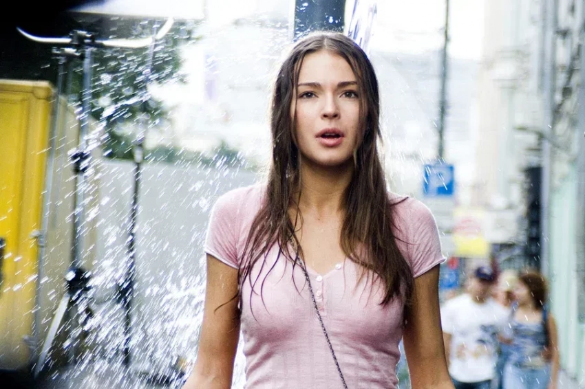 Агния Дитковските и Алексей Чадов в фильме "Жара" (2006)/Фото: кадр из фильма/Art Pictures StudioМелодрама Резо Гигинеишвили "Жара" почти 20 лет назад сделала 17-летнюю Агнию Дитковските звездой, а её героиня Настя запомнилась многим зрителям. В одной из самых узнаваемых сцен фильма, когда на Настю выливают ведро воды, а герой Алексея Чадова приходит ей на помощь и влюбляется, она одета в простой, но запоминающийся образ — розовую футболку и джинсовую мини-юбку, тогда такая была в гардеробе у каждой. Экранная история любви, кстати, вскоре стала реальностью: актёры закрутили роман, который продлился несколько лет. Повторить образ Агнии сегодня легко: футболку заменим на кардиган с завязками, а модные тогда замшевые сапоги на плоской подошве — на казаки.