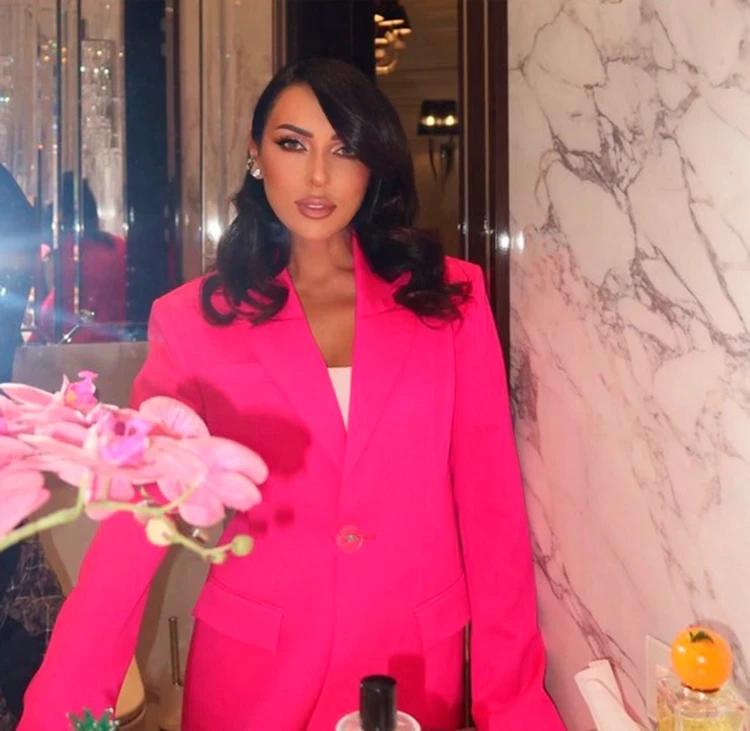 Жгучей брюнетке Алсу к лицу все оттенки розового — от спокойного пастельного до дерзкой фуксии. Розовый жакет певица дополнила белым топом. В качестве украшения звезда использовала кафф со стразами. Очень идет Алсу укладка набок, а также серебристо-розовый макияж.