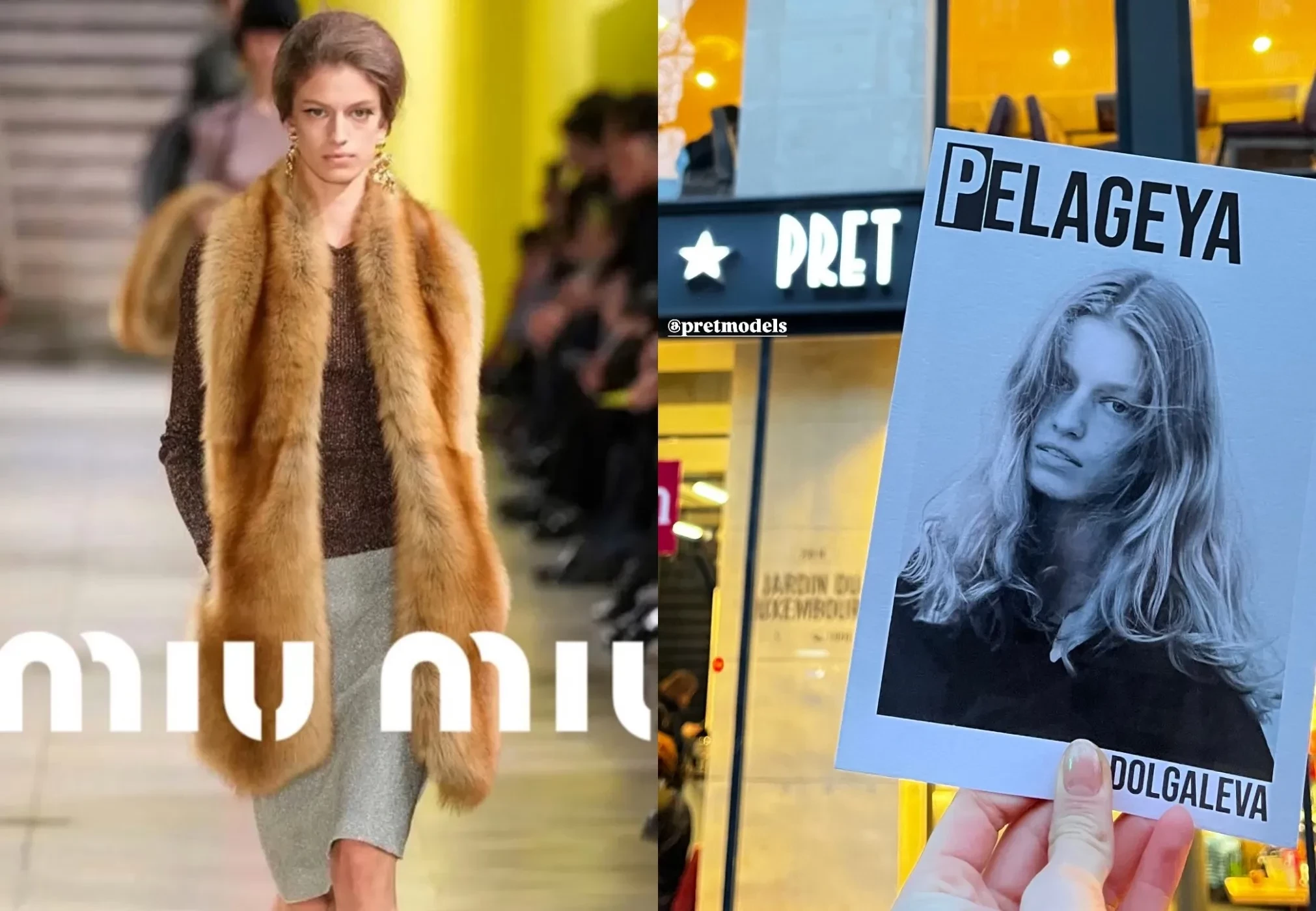 Пелагея Нецветаева-Долгалёва (настоящее имя — Полина. — Прим. ред.) вновь приняла участие в показах на Неделе моды в Париже. В прошлом году 20-летняя балерина уже стала одной из самых востребованных российских моделей на этом мероприятии, а в этом сезоне представила коллекцию Miu Miu. На показе модного дома она дефилировала в коричневом лонгсливе с люрексом, блестящей юбке миди, зелёных гольфах, туфлях-лодочках на каблуках и меховом боа.