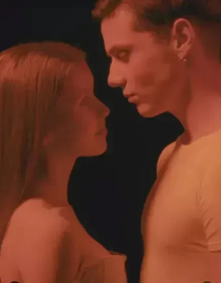 В ролике Пересильд и 19-летний Дмитриенко обнимаются. После Ваня держит актрису за руку над пропастью, однако в конце видео она всё равно падает.