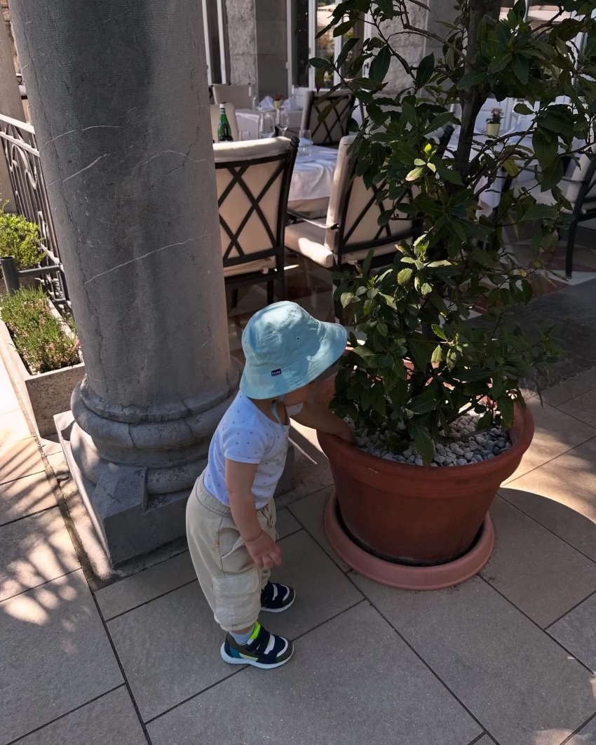 Милош БиковичЕго жена также выложила несколько снимков из путешествия. На одном из них сын тянется рукой в горшок с деревом.