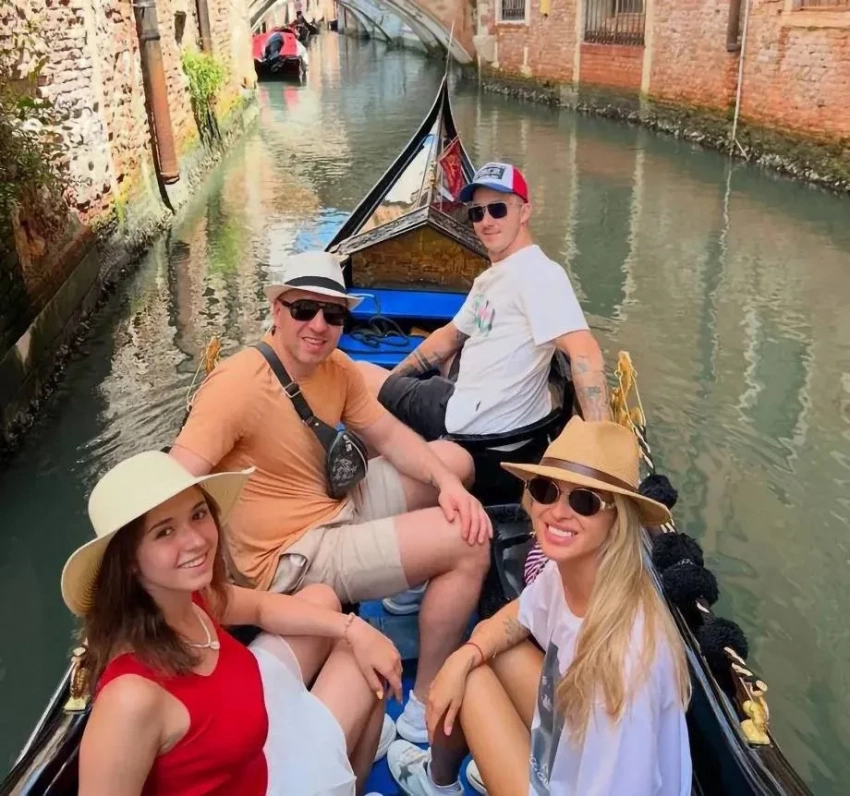 На снимке запечатлены Галиевы и Валиева с Нестеровым во время отдыха в Венеции. Фигуристка сидит на гондоле рядом с Никитой и улыбается. Также телеграм-канал "Тулуп Тутберидзе" выкладывал совместное фото пары во время прогулки: на снимке они идут, держась за руки.