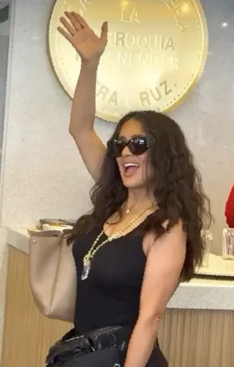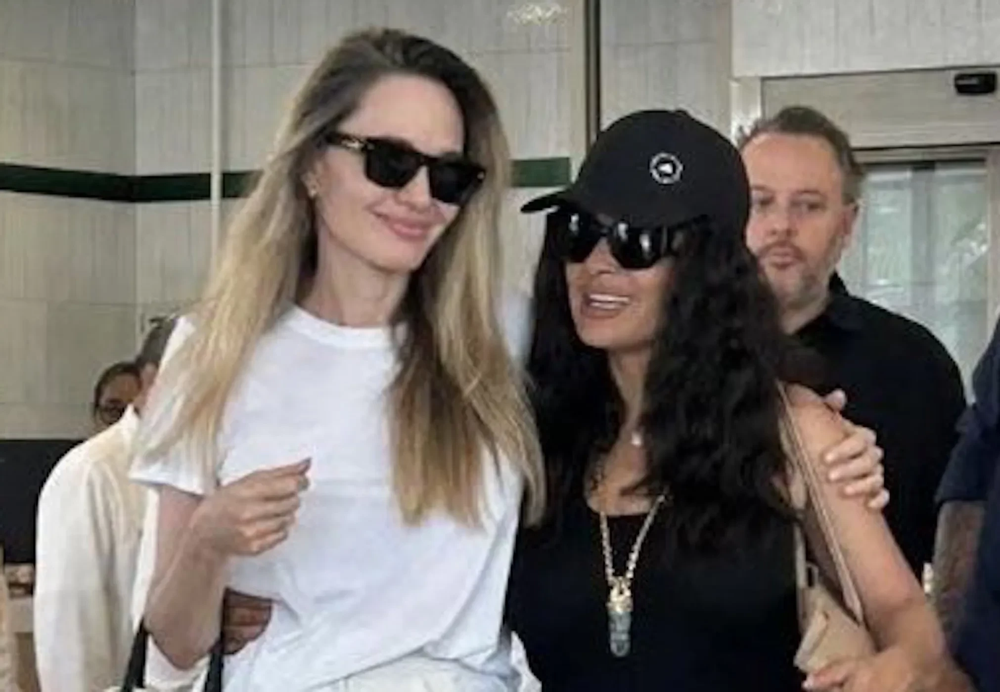 Сальма Хайек50-летняя Анджелина Джоли была одета в белые брюки и футболку, а 58-летняя Сальма Хайек выбрала образ total black. Обе актрисы дополнили свои луки солнцезащитными очками.