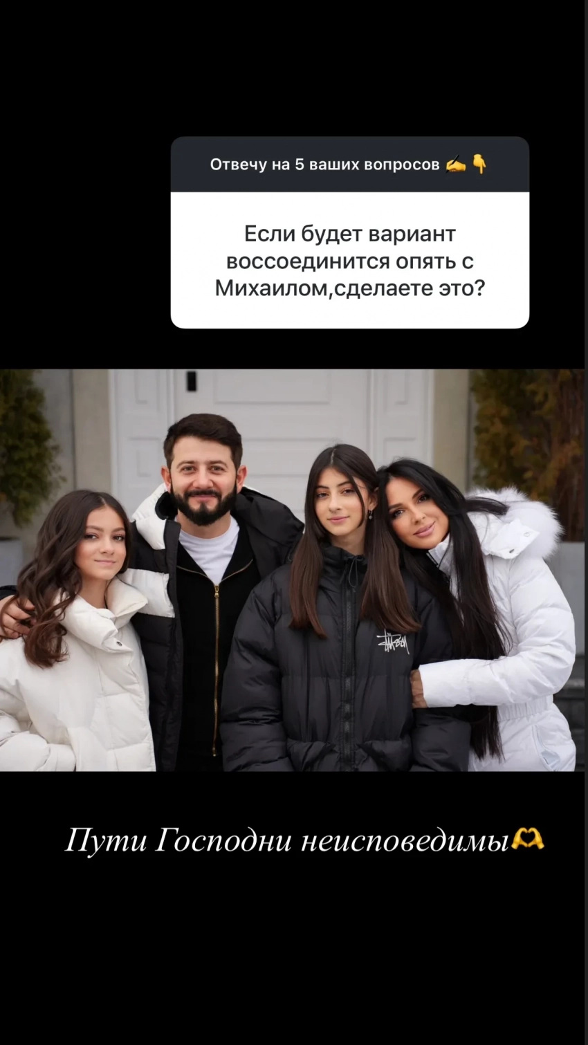 Сторис* Виктории ГалустянОднако наиболее обсуждаемым стал вопрос о возможном воссоединении с Михаилом. Виктория дала уклончивый, но интригующий ответ: "Пути Господни неисповедимы".