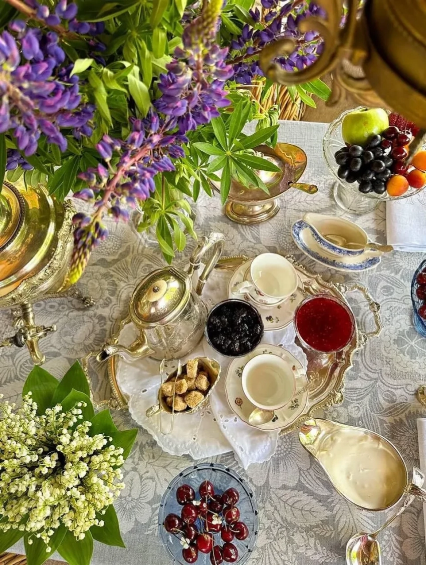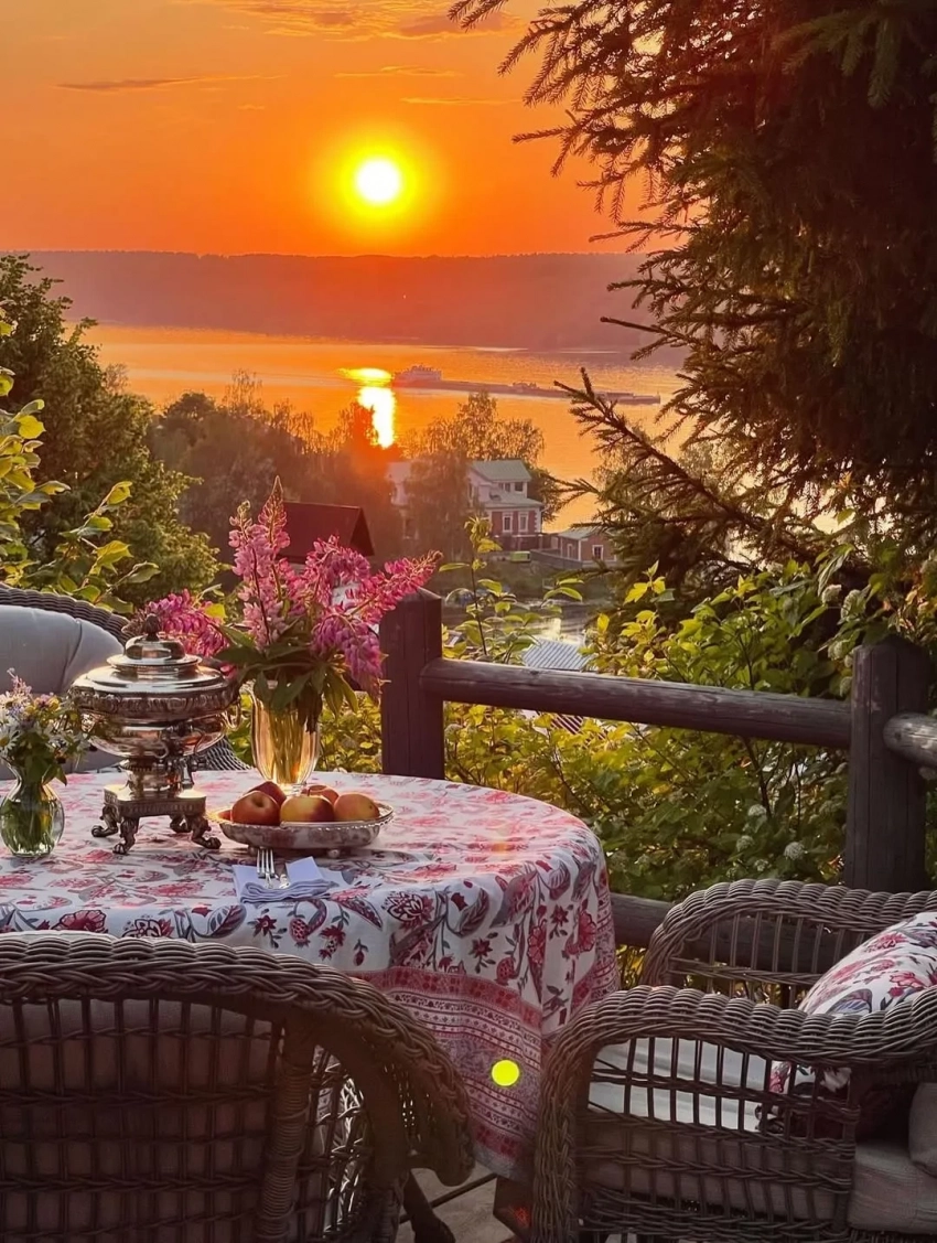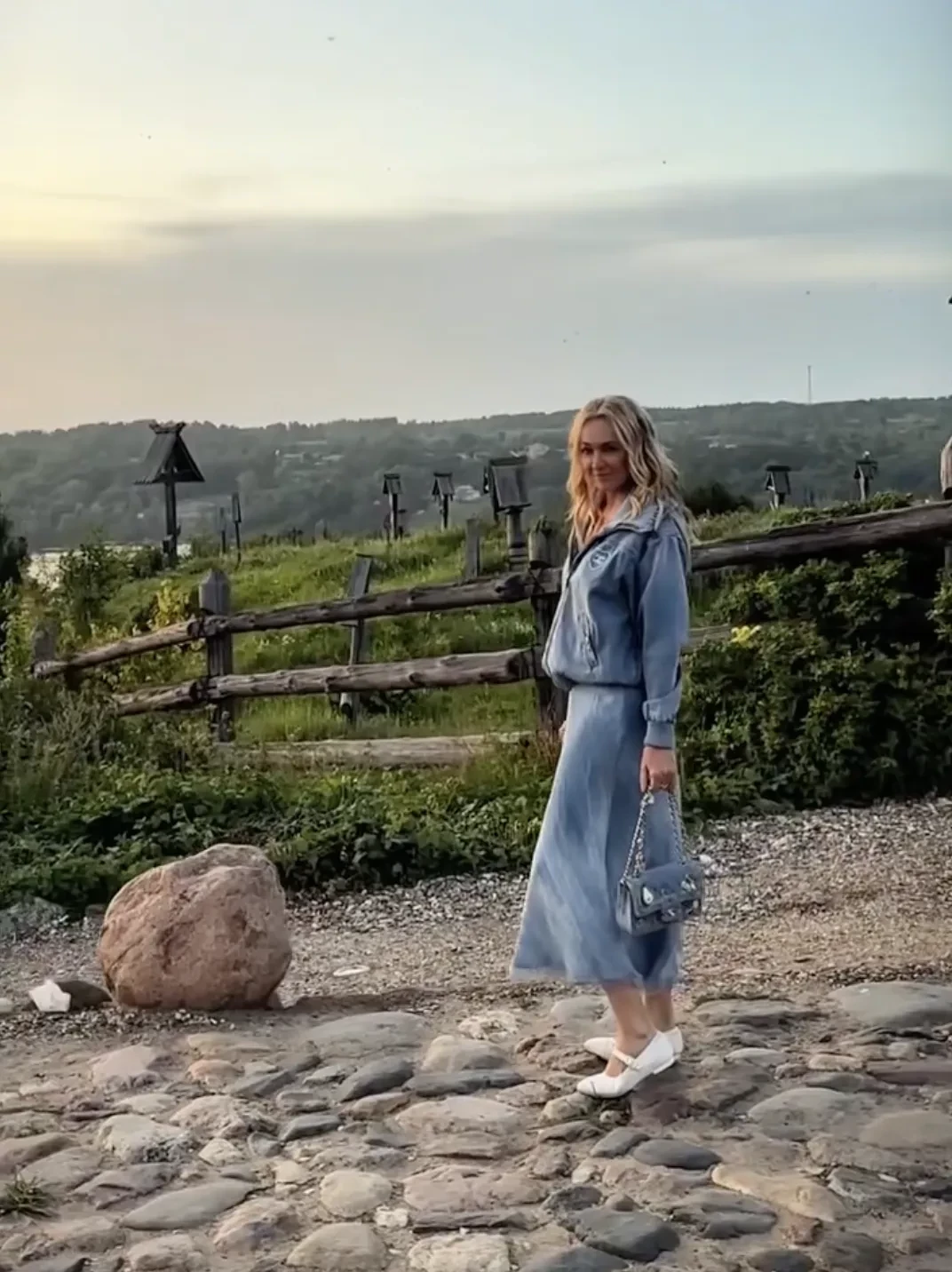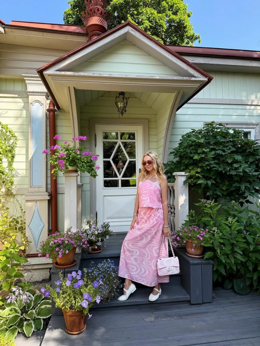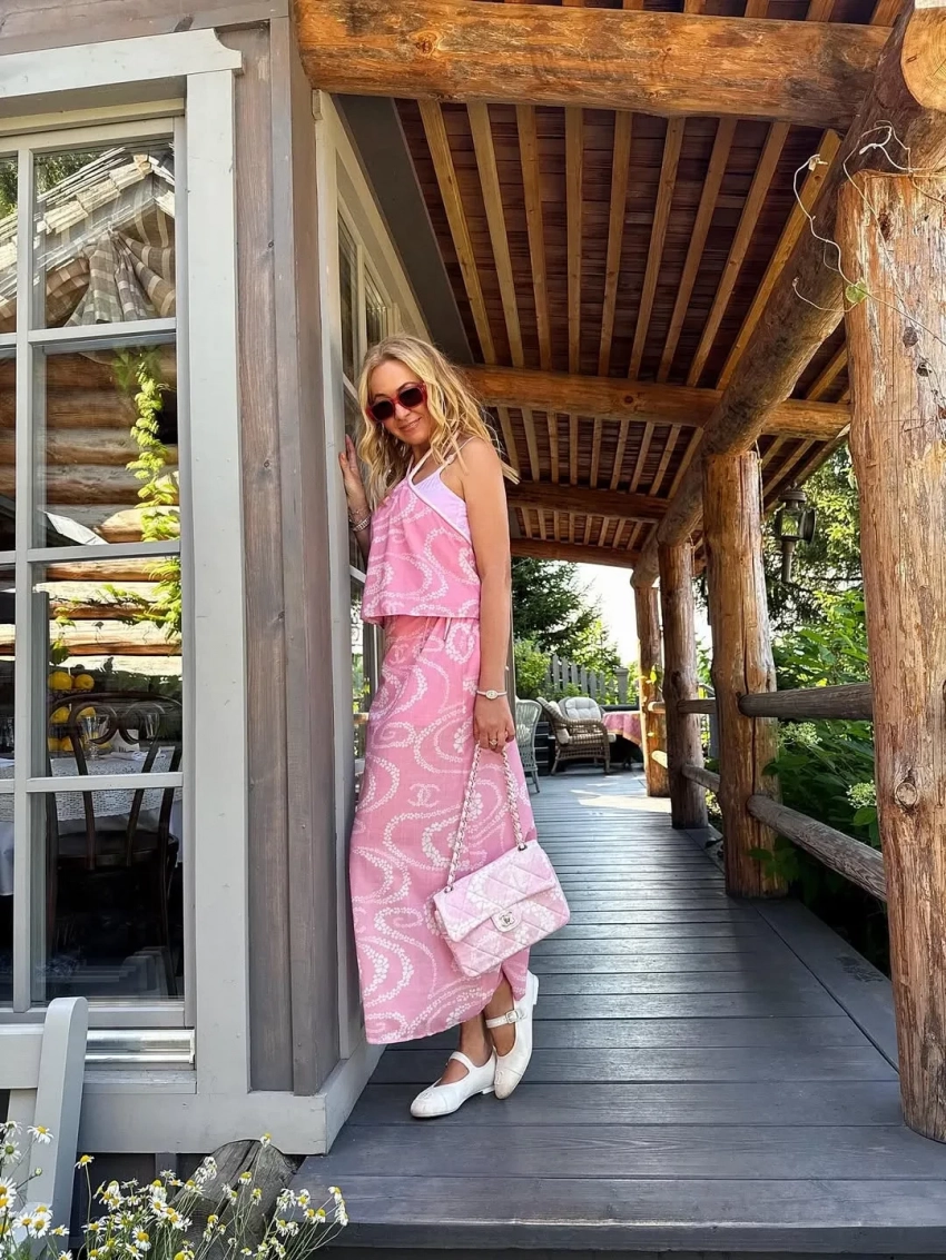 Звёздная семья остановилась в гостевом доме на берегу реки Волги, куда добиралась около семи часов. "Такое ощущение, что не в России", — сказала 50-летняя Яна, прогуливалась по живописной территории Плёса в образах Chanel и Dior.